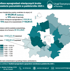 Mediana wynagrodzeń miesięcznych brutto w powiecie poznańskim październiku 2025 r. A A A 30.04.2026 Pliki do pobrania Mediana wynagrodzeń miesięcznych brutto w powiecie poznańskim październiku 2025 r. Tablice w formacie XLSX 0.02 MB Mediana wynagrodzeń miesięcznych brutto w powiecie poznańskim październiku 2025 r. Infografika w formacie JPG 0.10 MB Archiwum 2026 Mediana wynagrodzeń miesięcznych brutto w powiecie poznańskim w sierpniu 2025 r. 2025 Mediana wynagrodzeń miesięcznych brutto w powiecie poznańskim we wrześniu 2025 r. Mediana wynagrodzeń miesięcznych brutto w powiecie poznańskim w lipcu 2025 r. Mediana wynagrodzeń miesięcznych brutto w powiecie poznańskim w czerwcu 2025 r. Mediana wynagrodzeń miesięcznych brutto w powiecie poznańskim w maju 2025 r. Mediana wynagrodzeń miesięcznych brutto w powiecie poznańskim w kwietniu 2025 r. Mediana wynagrodzeń miesięcznych brutto w powiecie poznańskim w marcu 2025 r. Mediana wynagrodzeń miesięcznych brutto w powiecie poznańskim w lutym 2025 r. Mediana wynagrodzeń miesięcznych brutto w powiecie poznańskim w styczniu 2025 r. 2024 Mediana wynagrodzeń miesięcznych brutto w powiecie poznańskim w grudniu 2024 r. Mediana wynagrodzeń miesięcznych brutto w powiecie poznańskim w listopadzie 2024 r. Mediana wynagrodzeń miesięcznych brutto w powiecie poznańskim w październiku 2024 r. Mediana wynagrodzeń miesięcznych brutto w powiecie poznańskim we wrześniu 2024 r. Mediana wynagrodzeń miesięcznych brutto w powiecie poznańskim w sierpniu 2024 r.